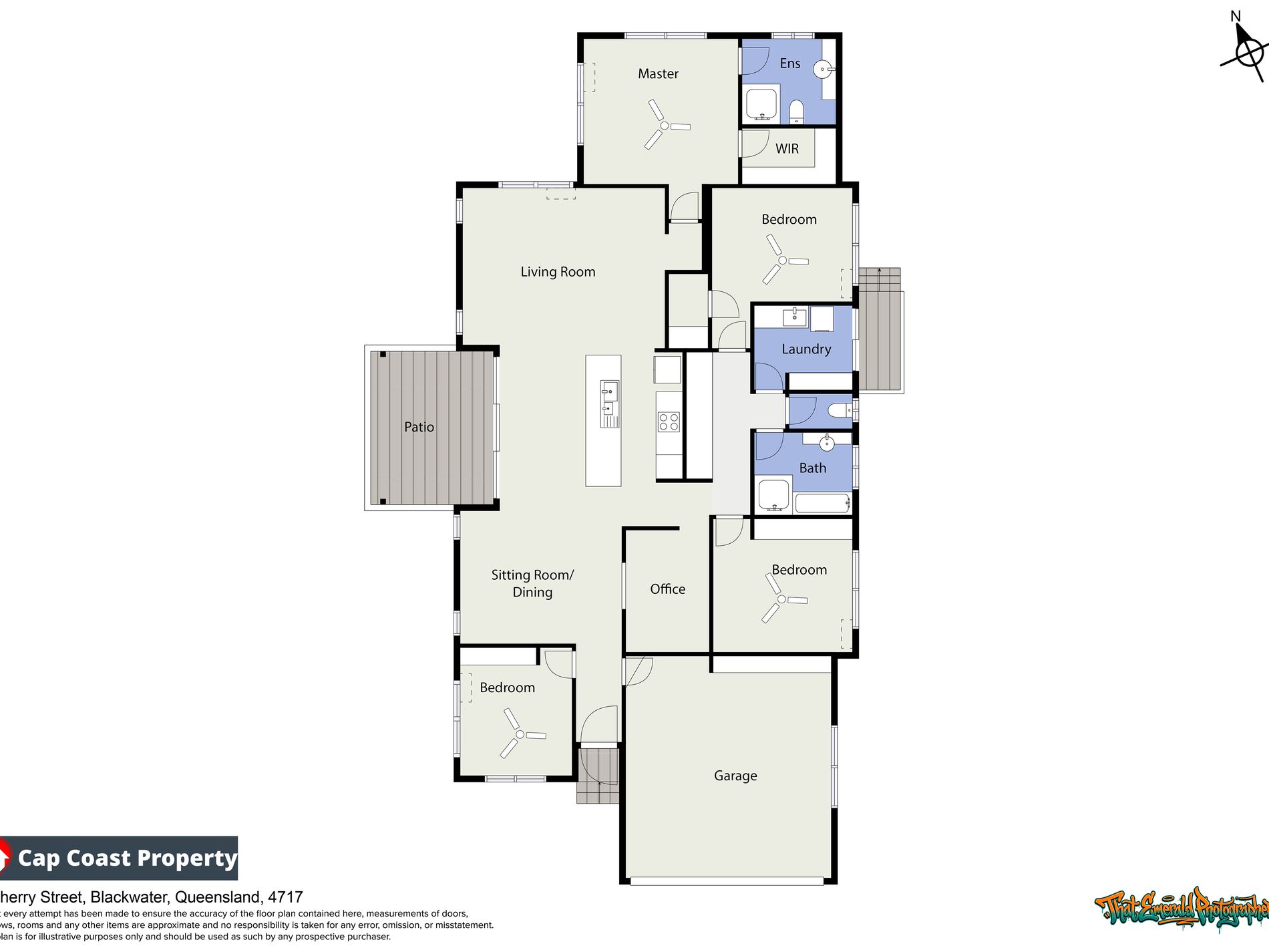 Comfort and efficiency are exceptional: High ceilings through-out, five brand new split system Air-cons only recently installed and Ceiling fans through out.